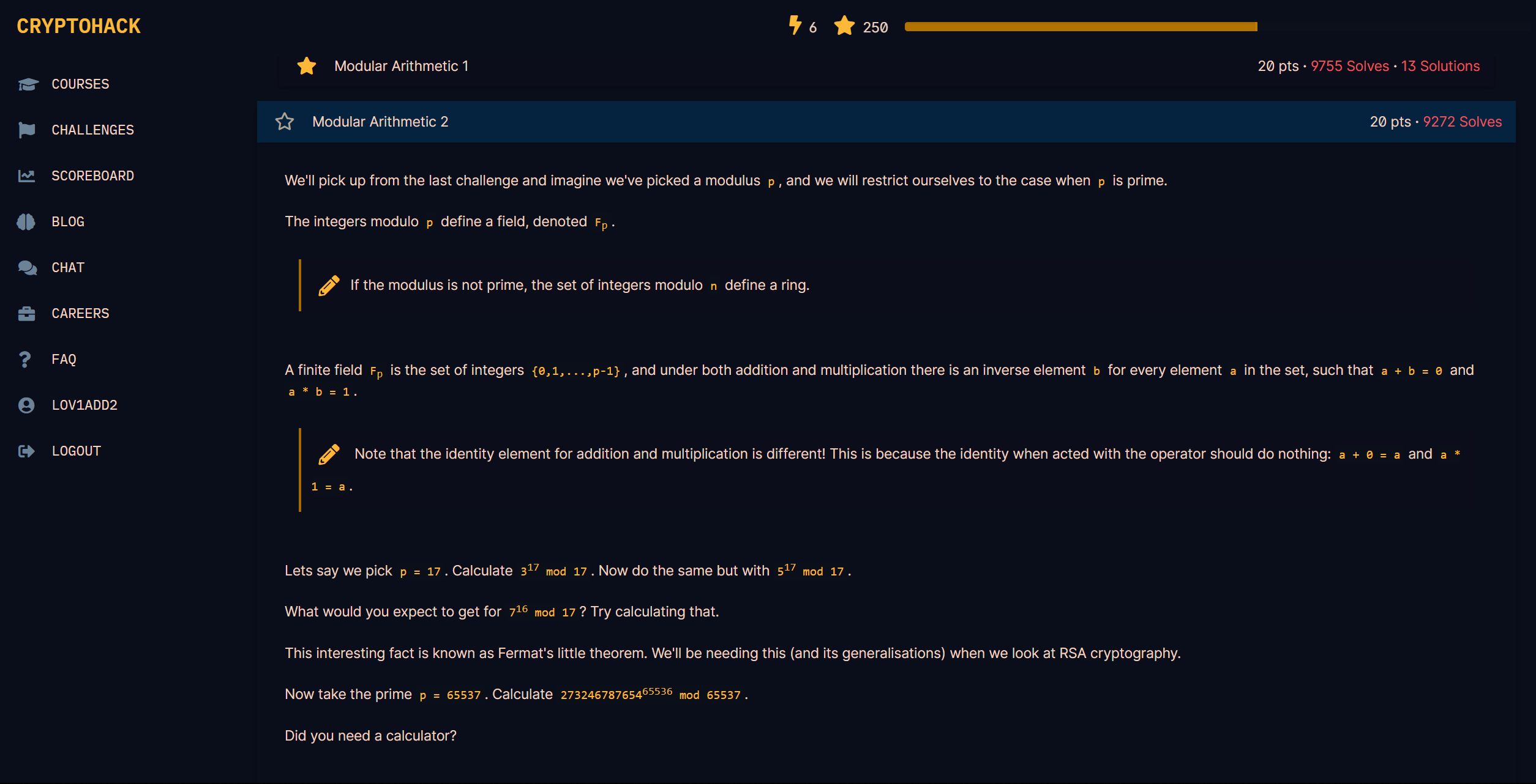 # 正如我们所看到的,我们可以在一个有限域Fp内工作,对元素进行加法和乘法,并且总是获得该域的另一个元素。