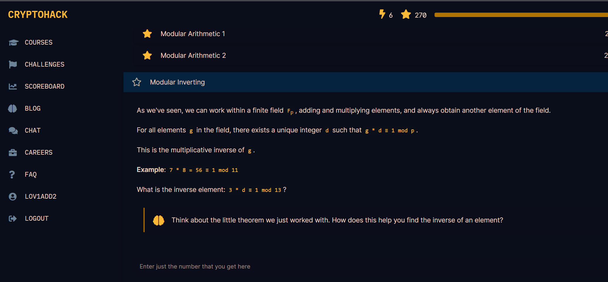 # 想想我们刚才的那个小定理。它是如何帮助你找到一个元素的逆的?