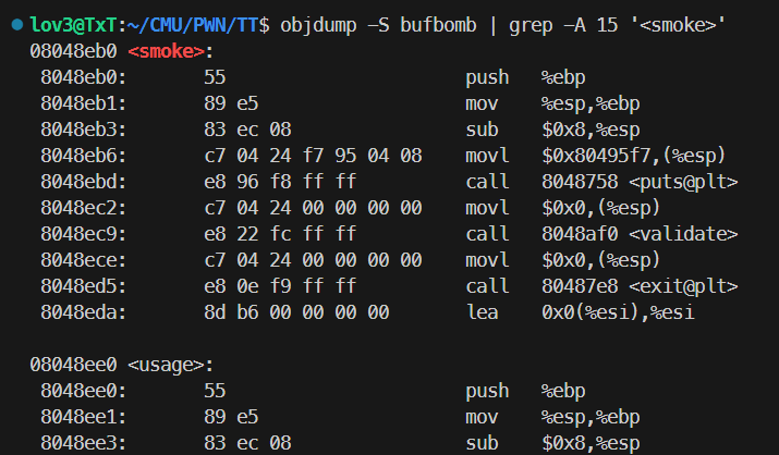 objdump 看一下 smoke() 地址