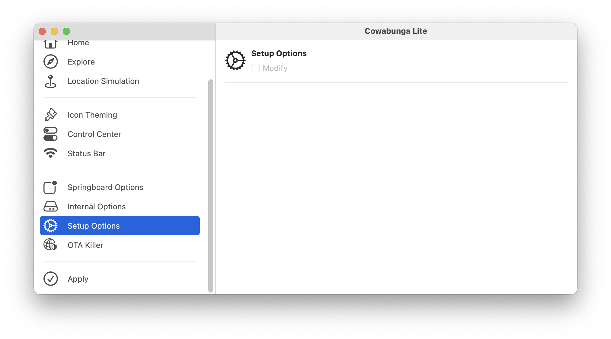 这么跟下来即可进入到 Cowabunga Lite App, 其他版本的 macOS 操作也类似